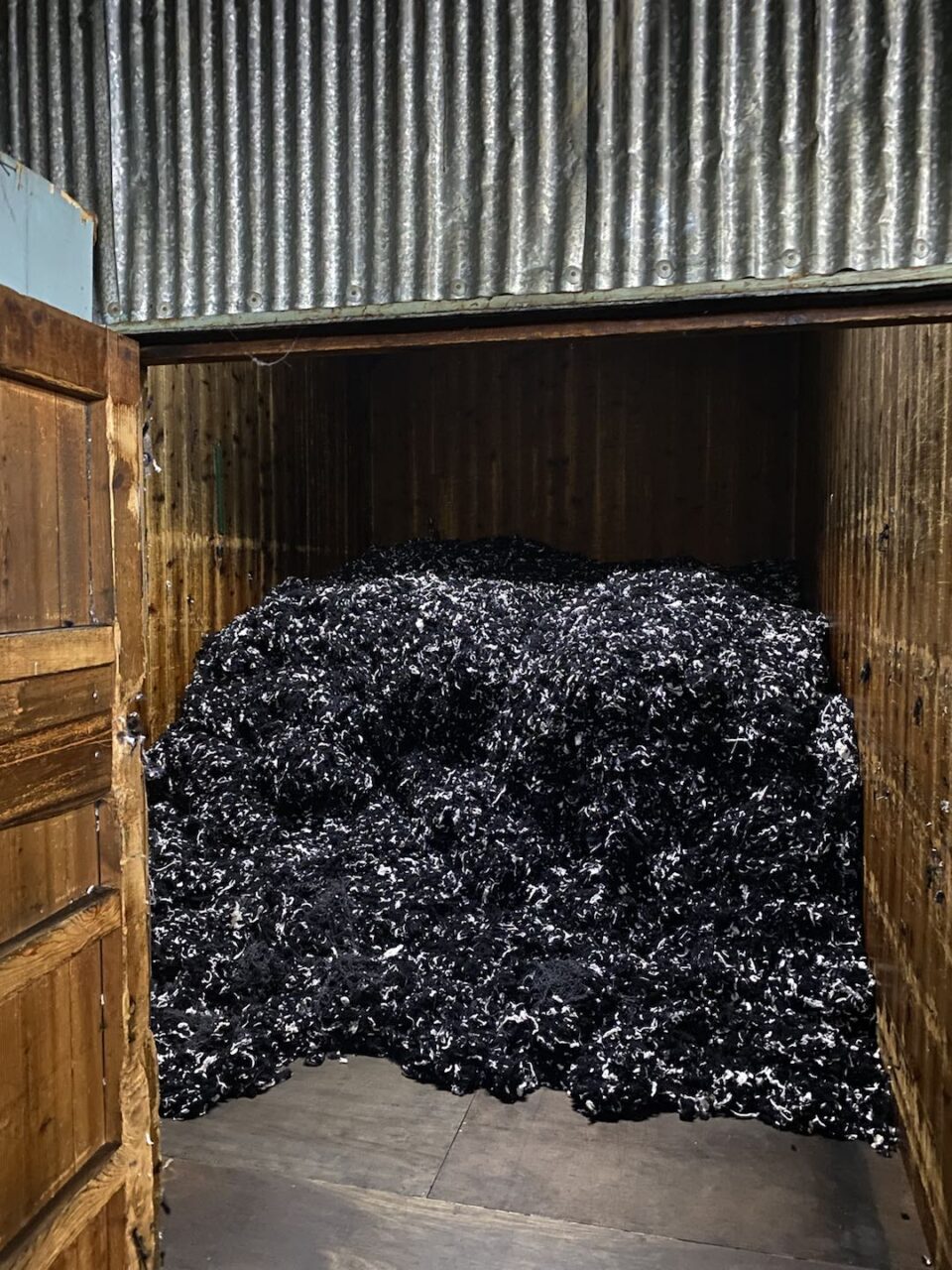 The image above is a washed wool fiber. When it is delivered to the factory compressed.